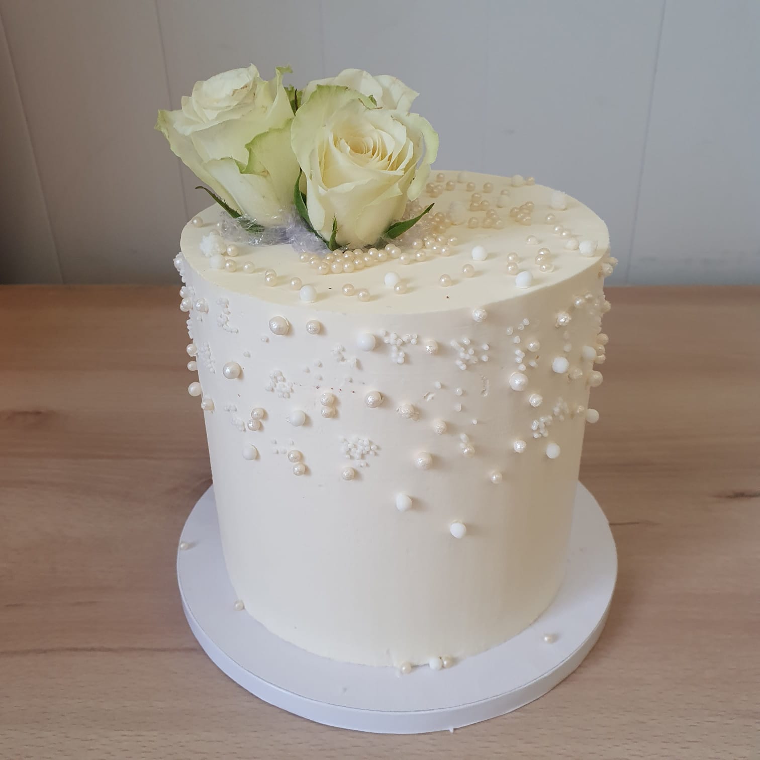 Photo non contractuelle. Perles comestibles // Fleurs non comestible // Recouvrement en crème au beurre à la meringue suisse ( pas lourd et non sucré )