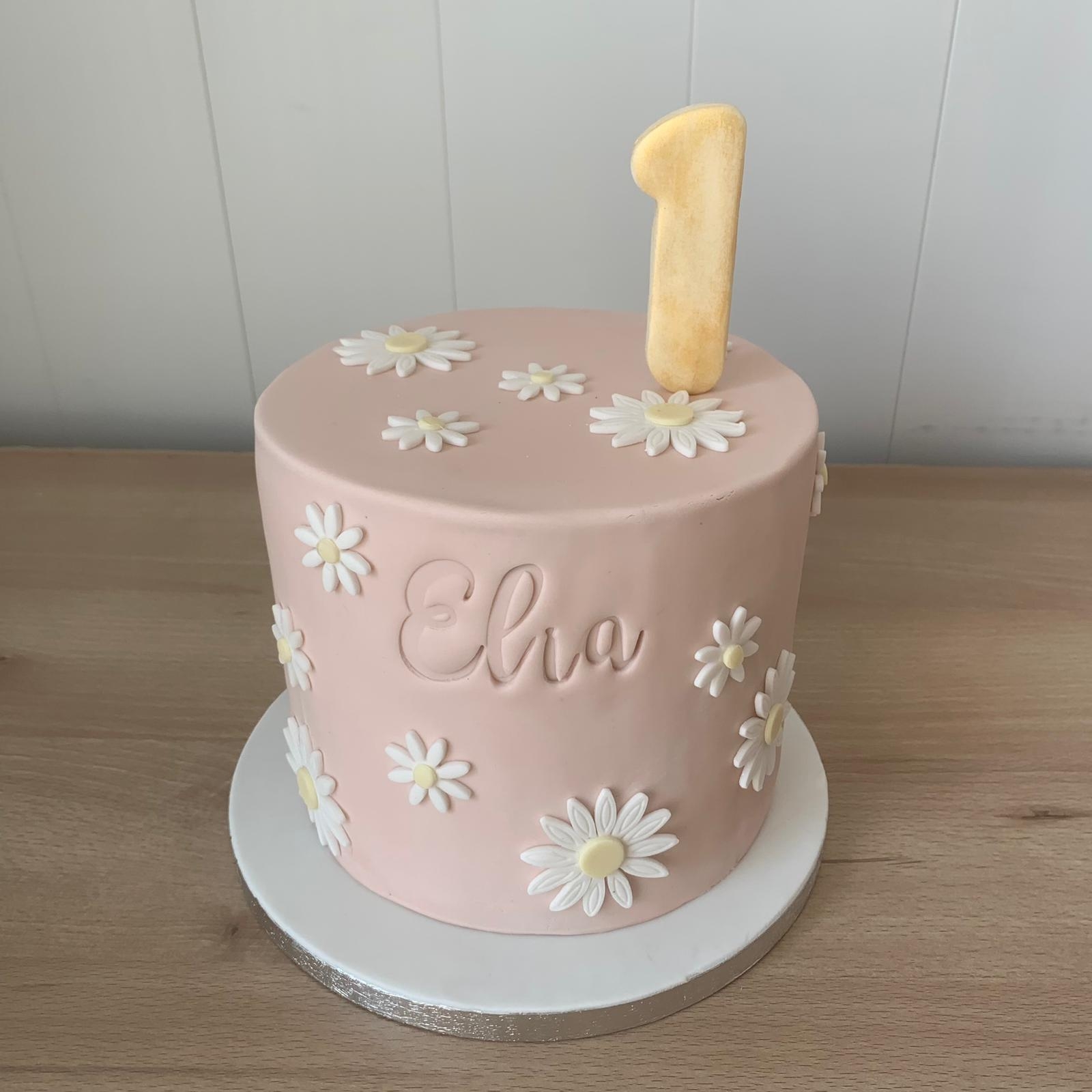 Succombez au charme champêtre de notre gâteau Marguerite rose.